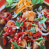 “ ร้านตกแต่งดีมาก สวยทุกมุม นั่งสบาย ลมเย็น บรรยากาศดี มีซุ้มติดน้ำ อาหารเมนูอาจไม่เยอะ แต่โอเค อาหารออกเร็ว รสชาติอร่อย ปริมาณพอเหมาะไม่มาก ไม่น้อย ชอบสุด คือ หมูน้ำตก ใช้สันคอทำอร่อยมาก ”